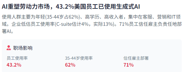 占比42%,企业级采用加快,代办署理AI曾经从简单的使命支撑成长到可以或许自从步履和完成复杂使命的系统。AI对分歧人群和行业的影响存正在显著差别,现私取平安问题日益凸显,占比42%。